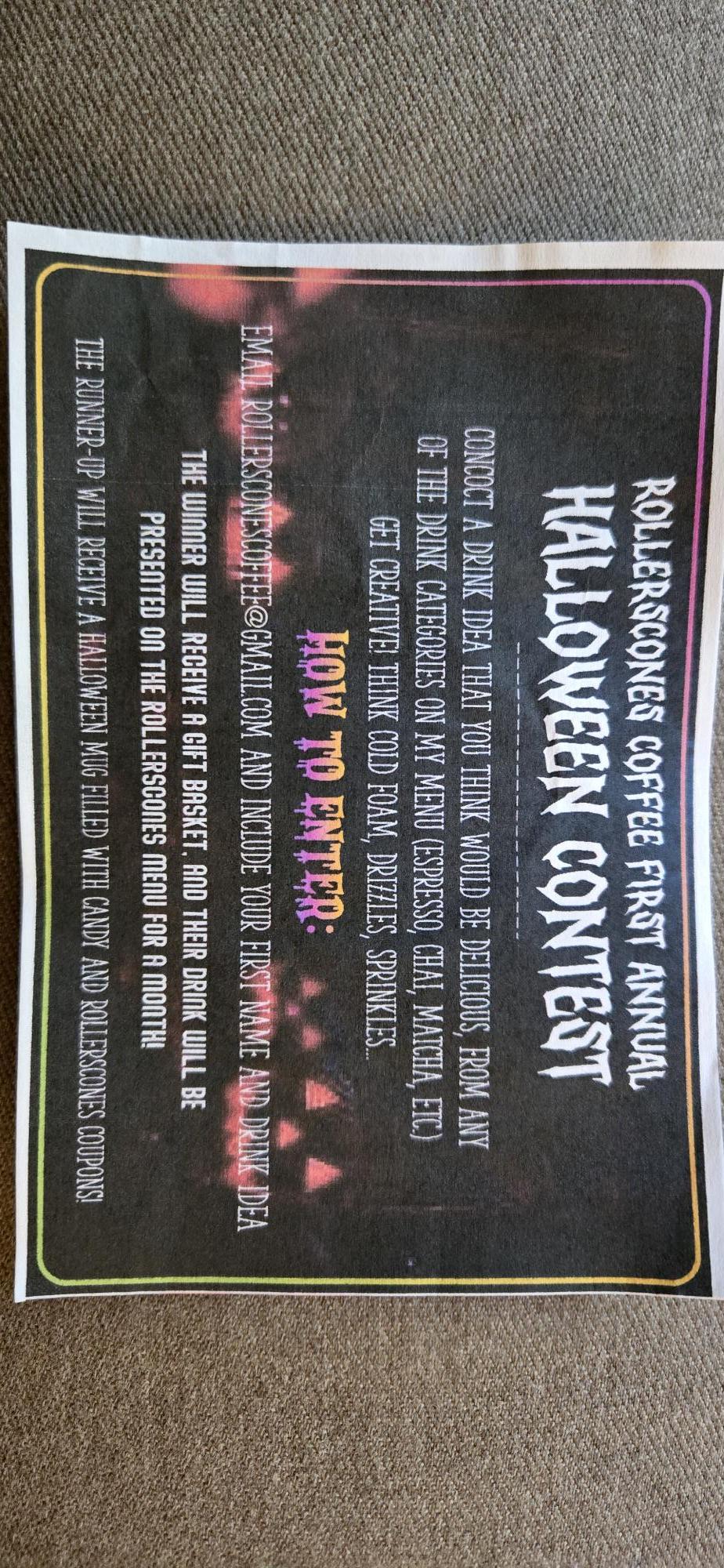 First Prize Wins a gift basket filled with all kinds of goodies and drink vouchers, and also a your drink will be featured at the Rollerscones coffee truck for the next month!