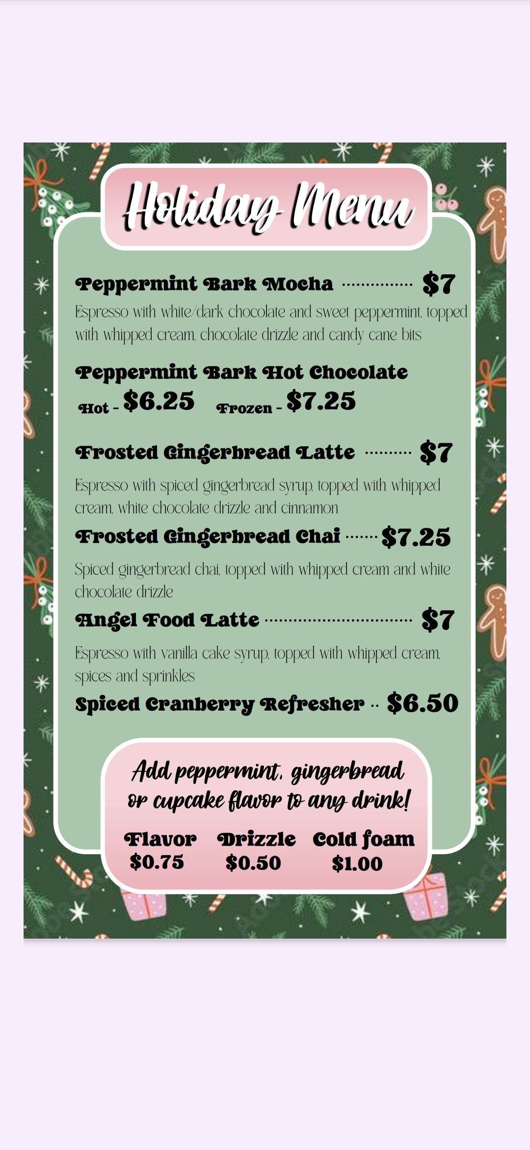 Also I will send a picture of the holiday menu!